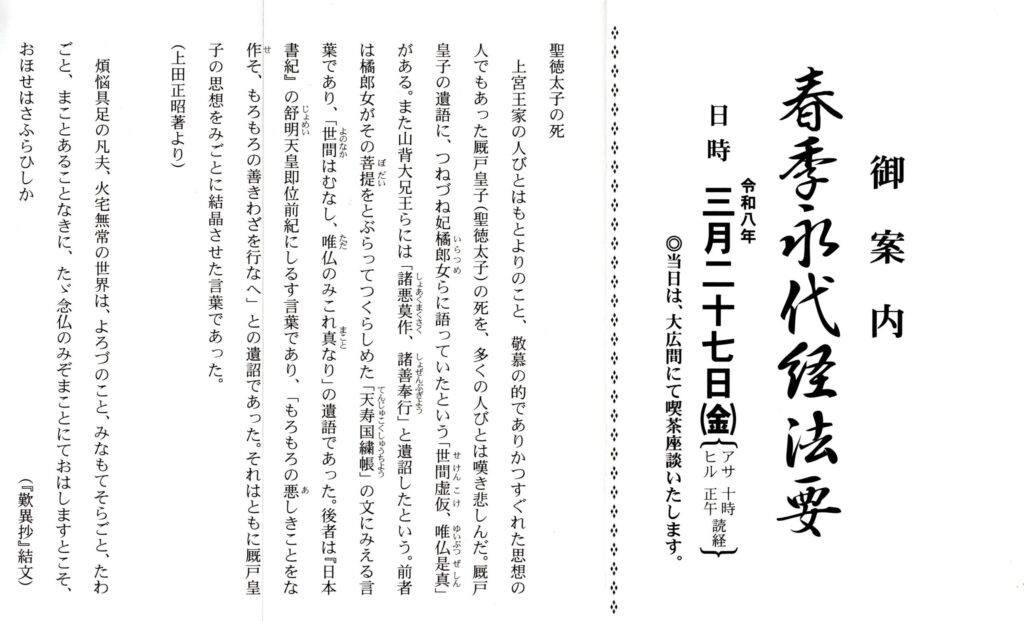春の穏やかな季節の中で、ともにお念仏申すご縁をいただきたいと思います。